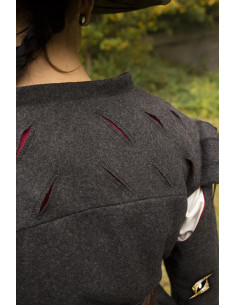Scopri l'eleganza e lo stile rinascimentale con la giacca Aramis. Realizzata in lana grigia, questa giacca slim fit a maniche lunghe è pensata per valorizzare la figura maschile. Il suo design versatile permette di indossarlo sotto l'armatura oltre che come un mantello, grazie agli occhielli ricamati lungo il petto e la parte superiore della schiena.