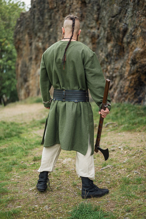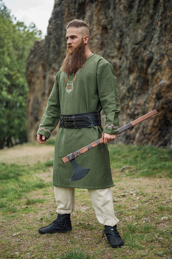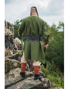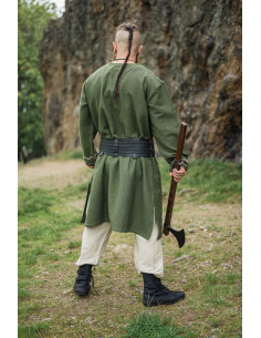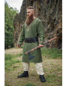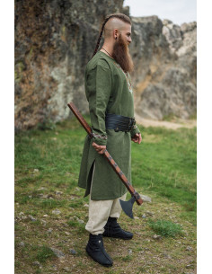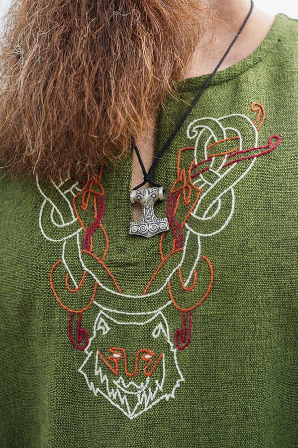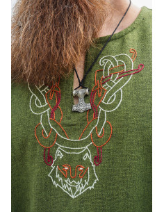 Tunica vichinga Freki con ricamo a mano, colore verde