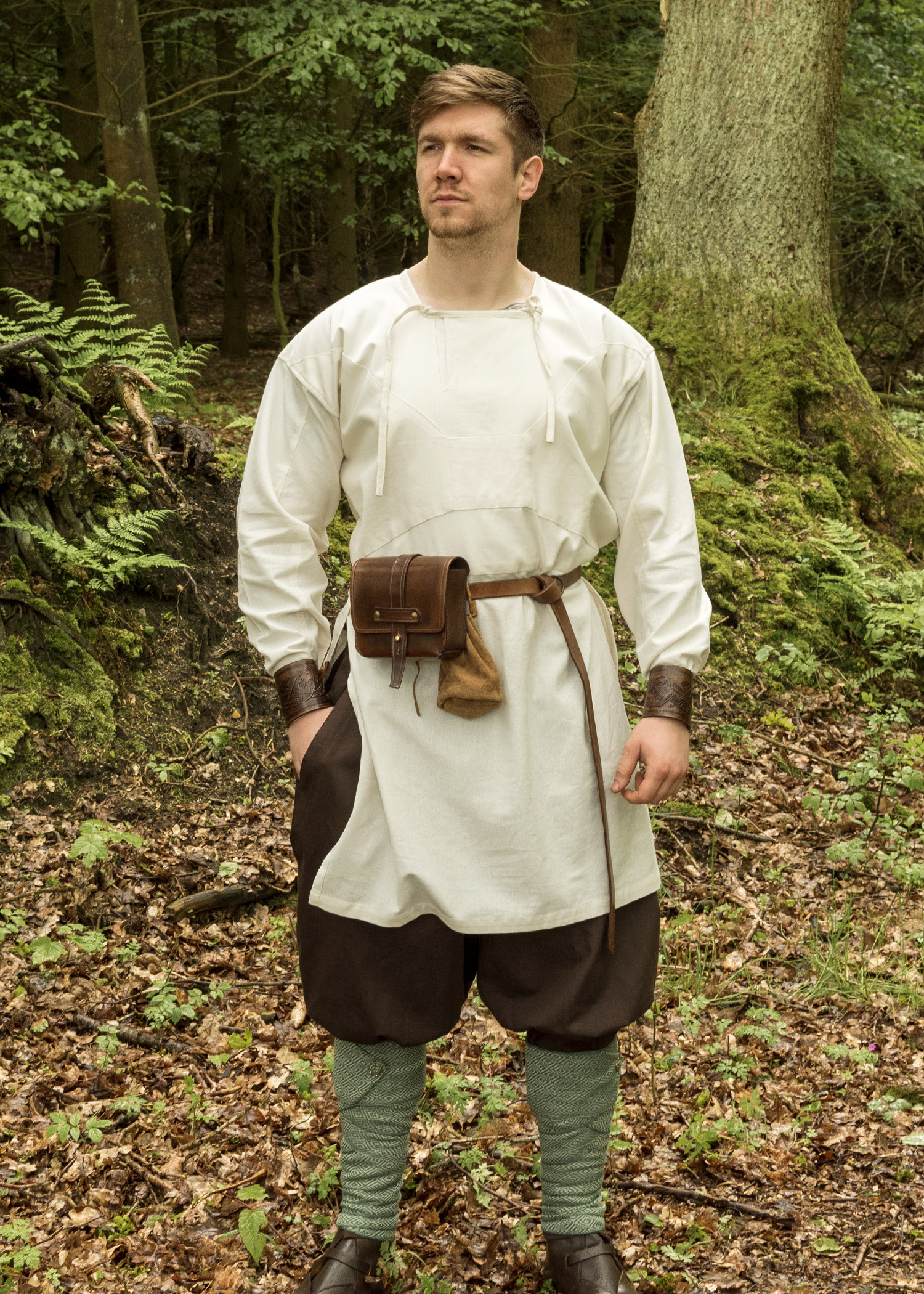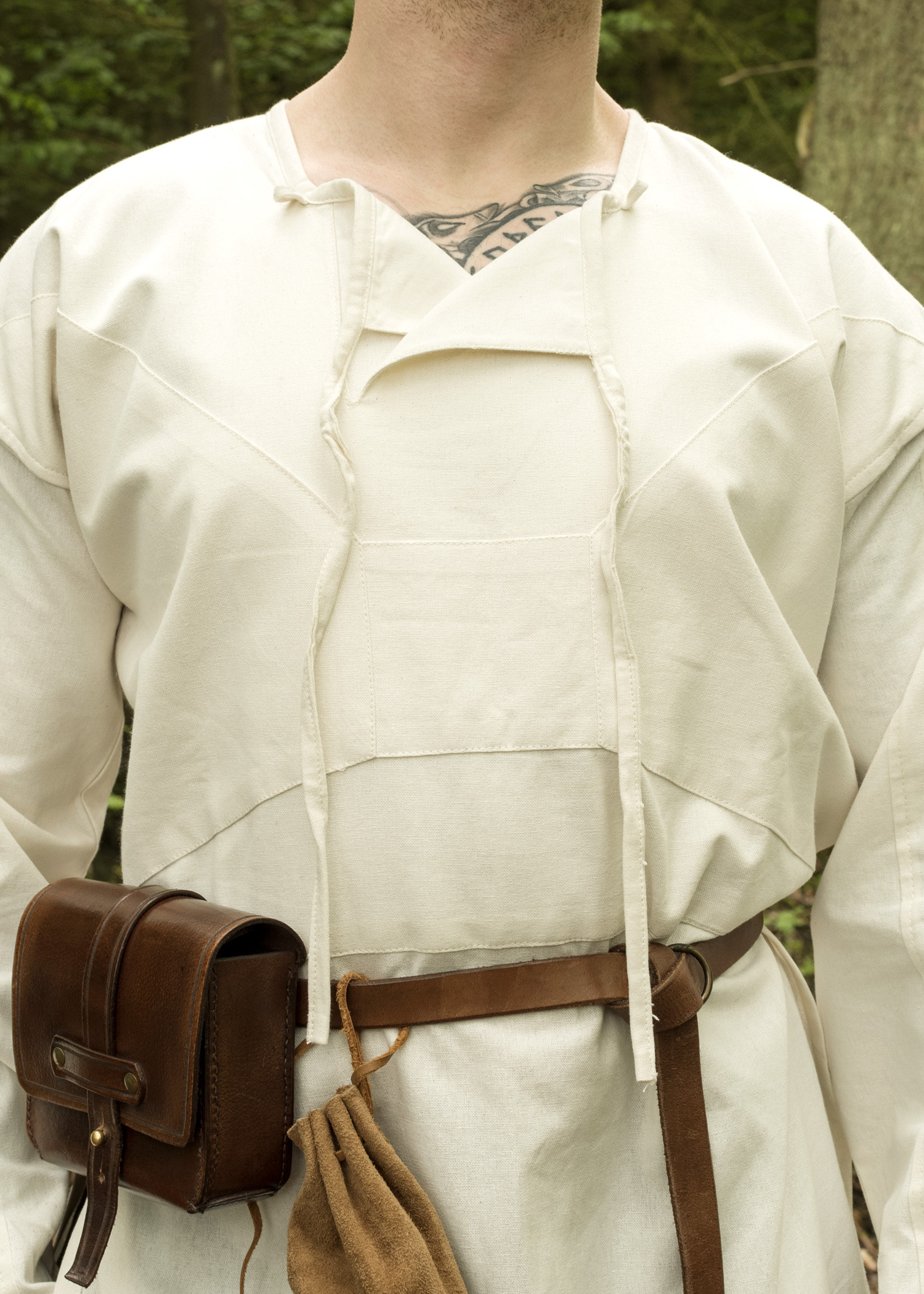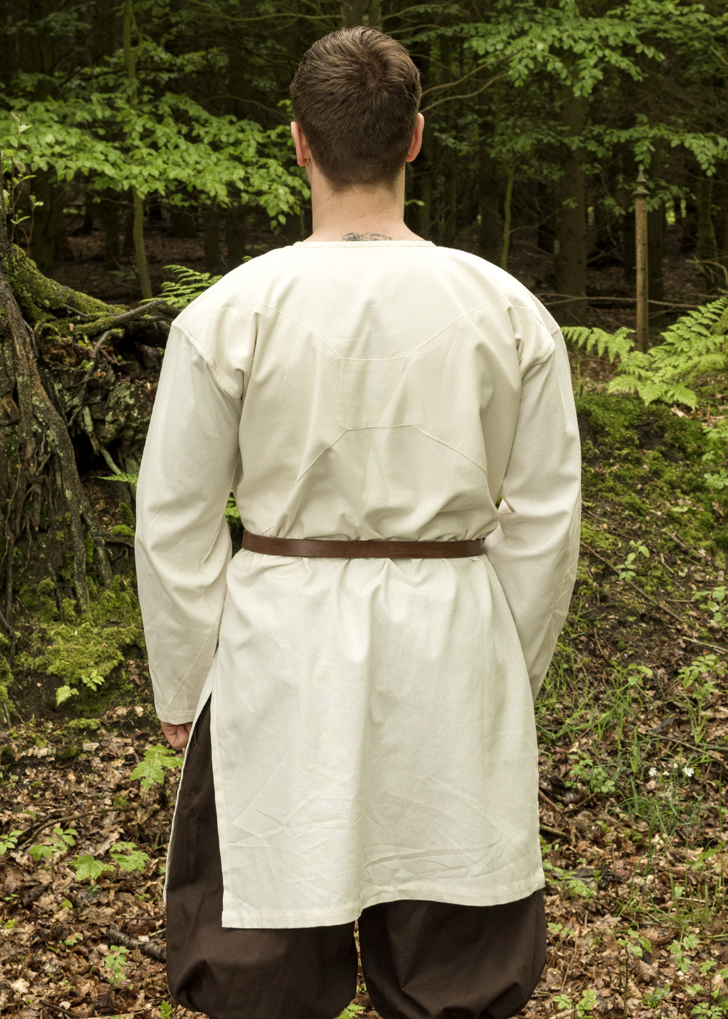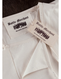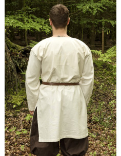 Tunica vichinga a maniche lunghe modello Viborg disponibile in bianco naturale. L'aspetto e il taglio di questa tunica si basano su un reperto archeologico risalente all'XI secolo. Nel 1984, durante gli scavi a Viborg, in Danimarca, è stato scoperto un fascio di tessuto liscio. Come si è scoperto, il pacchetto era composto da singoli frammenti che potevano essere riassemblati in una veste. Solo la schiena e le maniche non sono state completamente conservate, lasciando poco spazio all'interpretazione.