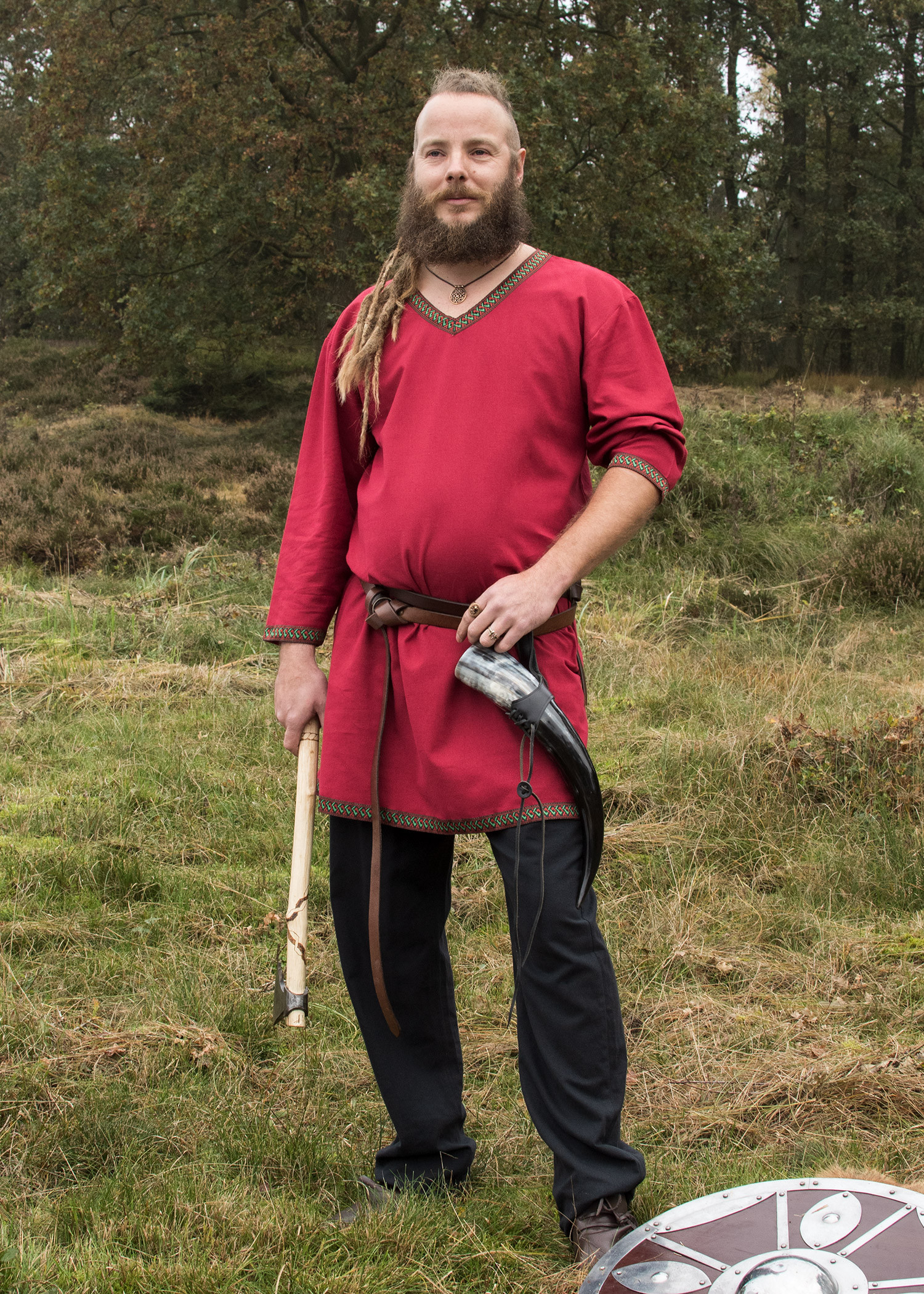 Tunica vichinga a spina di pesce in cotone modello Woodland, grigio-bordeaux