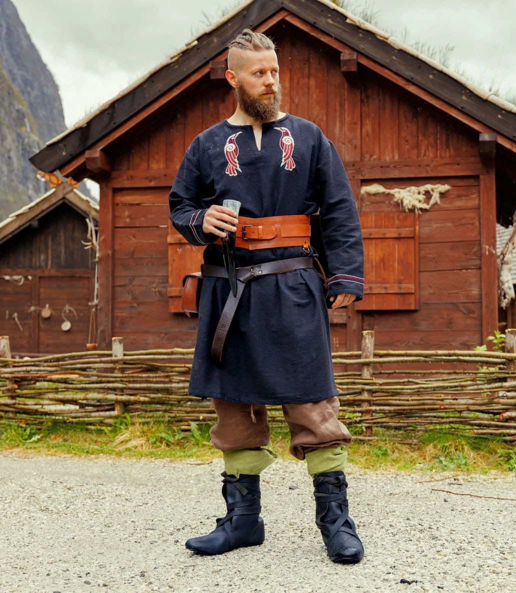Tunica vichinga in lino modello Ragnar, colore blu