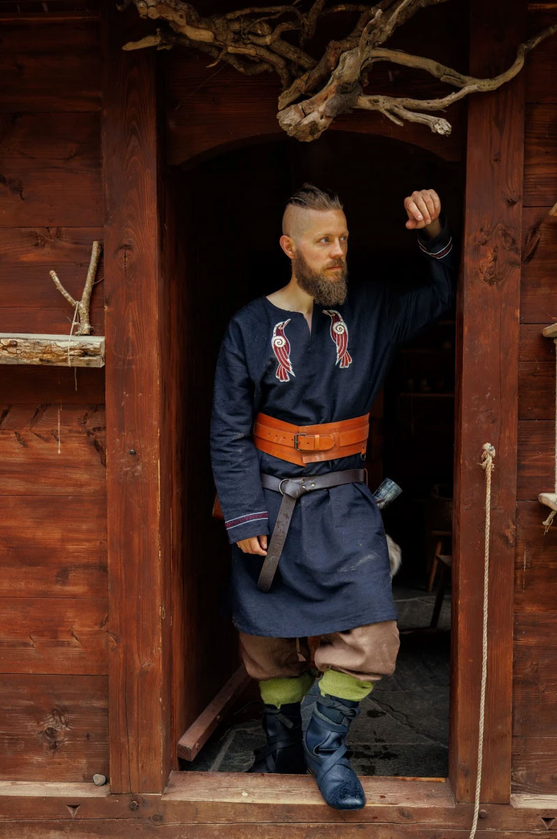 Tunica vichinga a maniche lunghe modello Hugin e Munin disponibile in nero. Questa tunica è perfetta per chi desidera uno stile vichingo elegante e autentico. Con il suo ricamo dei simboli vichinghi Hugin e Munin, questo indumento ti trasporterà al tempo dei coraggiosi guerrieri nordici.