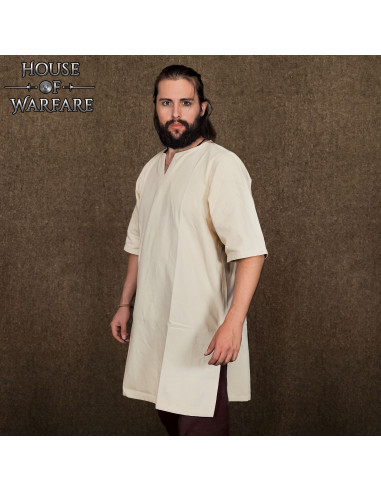 La tunica medievale Deherd in lino - Marrone è un capo indispensabile per tutti gli appassionati di LARP e ricostruzioni storiche. Realizzata in lino naturale di altissima qualità, questa sovtunika si distingue per il suo design elegante e la sua versatilità.