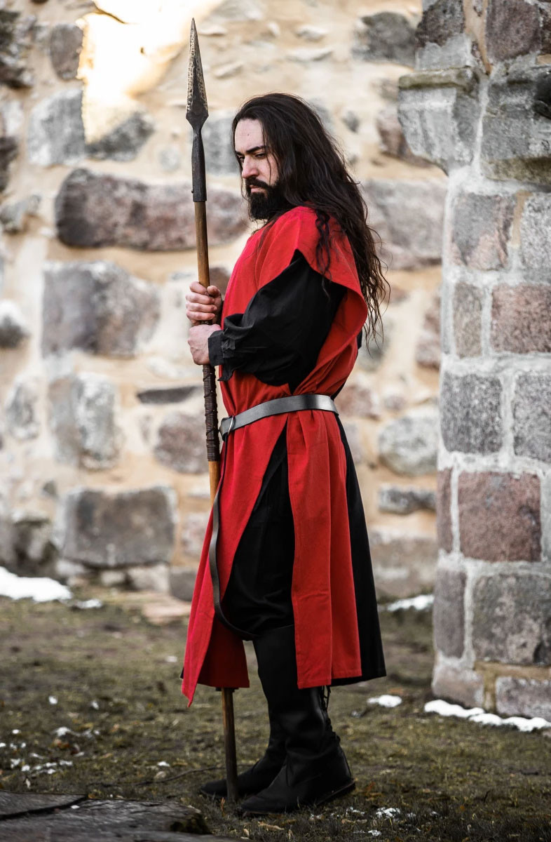 Il design bicolore nero e rosso è audace e attraente, facendoti distinguere dalla massa. Inoltre, la tunica ha spacchi laterali per il massimo comfort e libertà di movimento. La lunghezza totale di 129 cm è perfetta per chi cerca una tunica più lunga e autentica.
