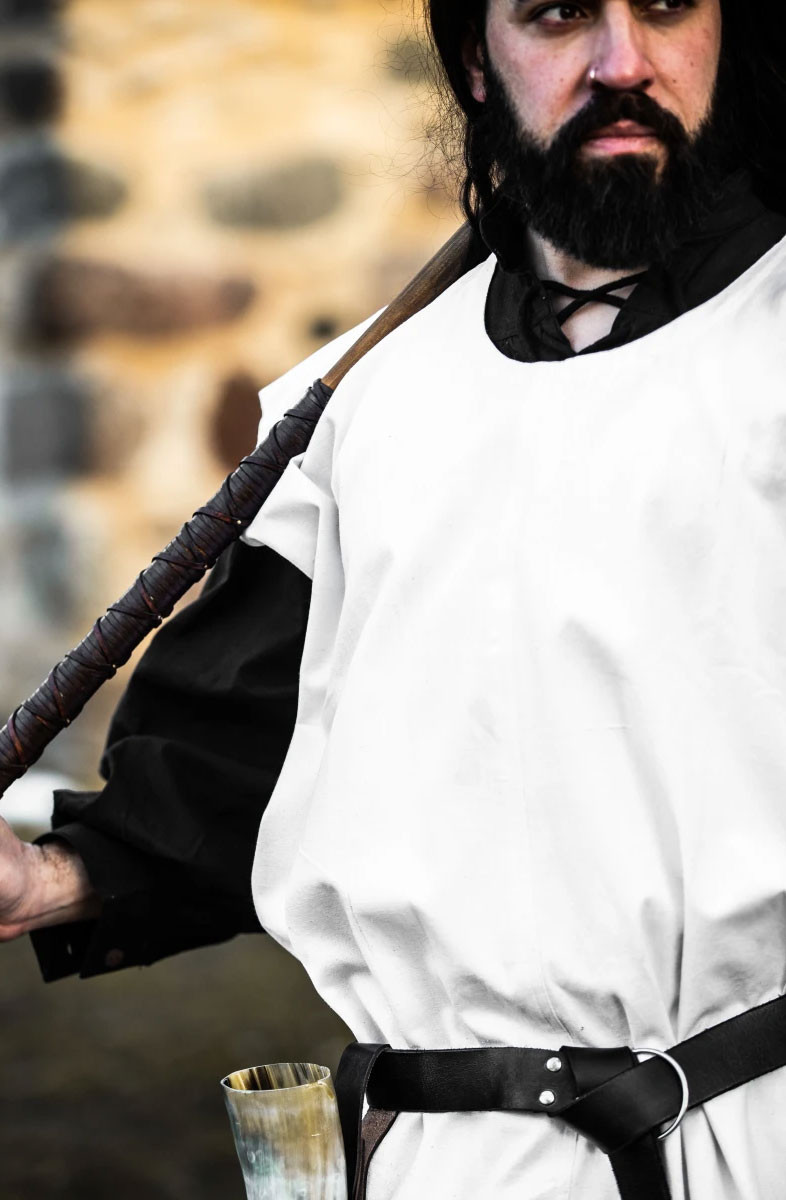 Sei alla ricerca di una tunica medievale semplice ma elegante?La tunica medievale in cotone modello Frojoerick in bianco è una scelta perfetta. Realizzata in 100% cotone, questa tunica è comoda e resistente, il che la rende ideale per qualsiasi evento di rievocazione storica.