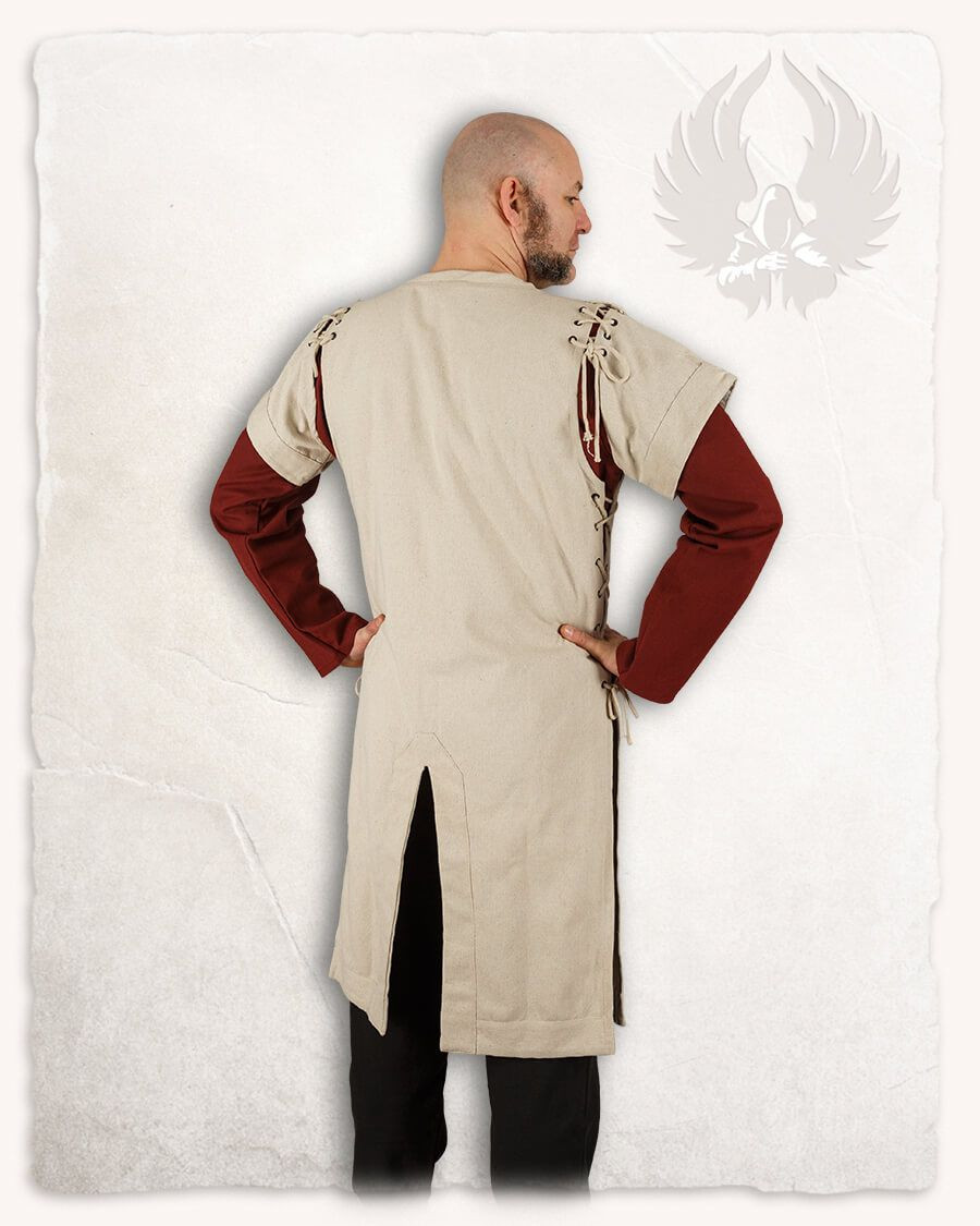 Una delle caratteristiche eccezionali del tabard medievale modello Hermann è che ha maniche corte staccabili. Questo ti dà la libertà di movimento necessaria in combattimento, senza sacrificare lo stile e la tradizione medievali. Inoltre, puoi regolarne la taglia e adattarla alla perfezione grazie alle coulisse regolabili sui lati.