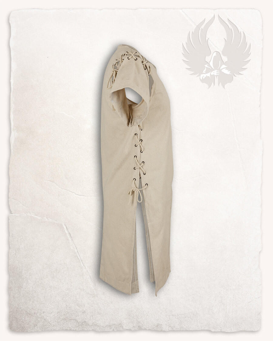 Cerchi un tabarro medievale di qualità da indossare ai tuoi eventi d'epoca? Non cercare oltre, il Tabard medievale modello Hermann in colore bianco naturale è la scelta perfetta per te. Questo tabard è ideale da indossare comodamente sopra la tua armatura, dandoti un look elegante e autentico.