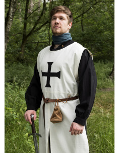 Scopri l'autentico Tabardo Medievale dei Cavalieri Teutonici nei toni naturali e neri! Questa tunica al polpaccio è realizzata in resistente tessuto di cotone e presenta una vestibilità dritta con spacchi laterali dalla vita in giù, oltre a spacchi leggermente più corti al centro davanti e dietro. Inoltre risalta la croce dell'Ordine Teutonico sul petto.