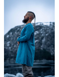 Tunica vichinga in lino modello Ragnar, colore blu