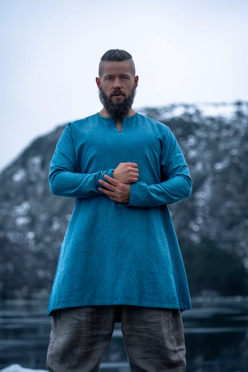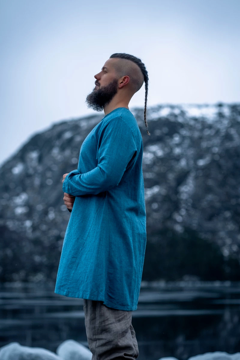Immergiti nell'autenticità vichinga con la nostra impressionante tunica in lino modello "Ragnar" in un sorprendente colore blu. Questo capo artigianale, realizzato in puro lino al 100%, unisce robustezza e leggerezza per regalarti il perfetto equilibrio tra stile e comfort.
