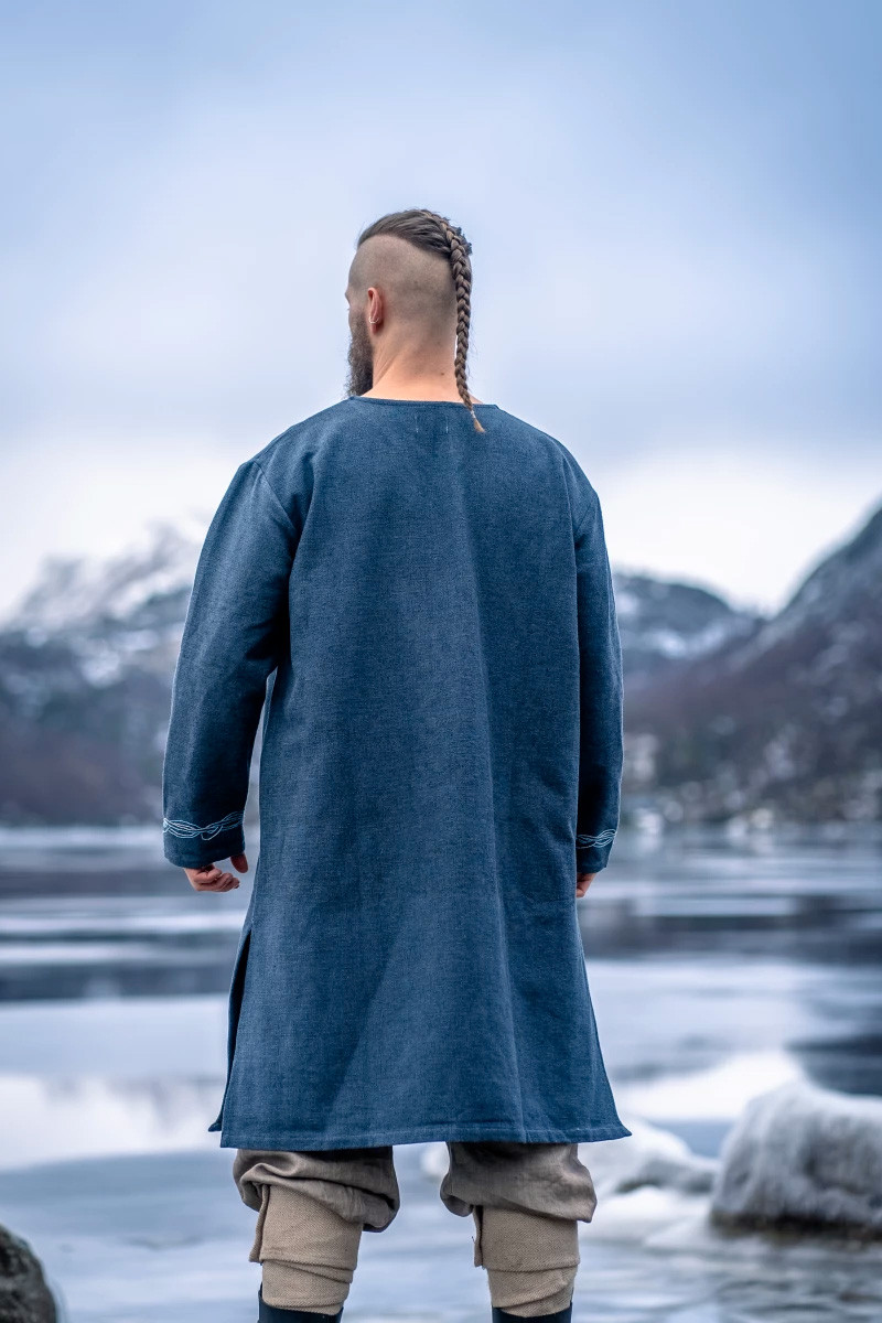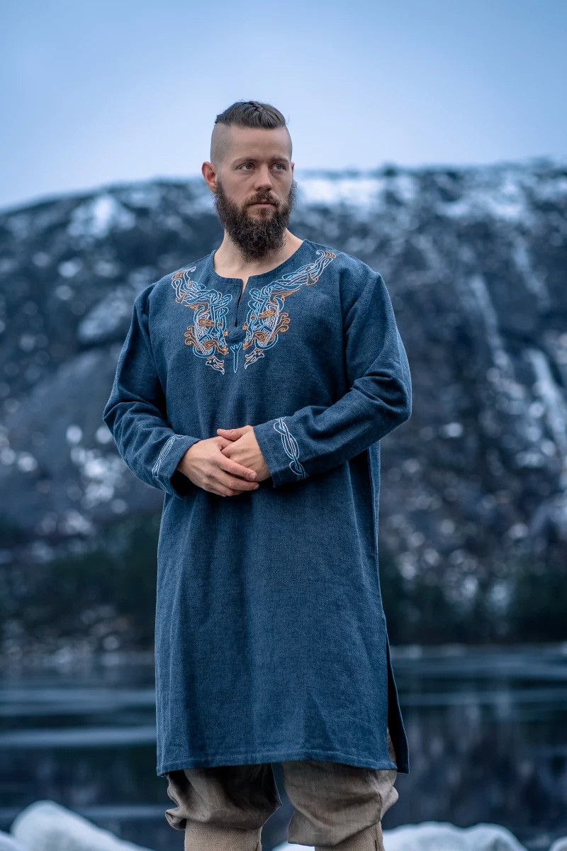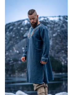 Risolviamo i tuoi dubbi su questo prodotto: Tunica vichinga di Snorri con ricamo a mano in stile Urnes, grigio-blu