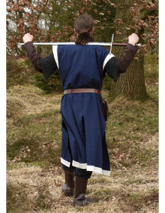 Tunica vichinga modello Leif, blu con dettagli in cuoio genuino