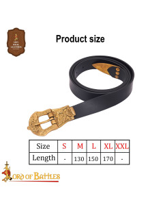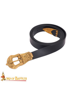 Richiesta su Cintura vichinga in pelle nera con fibbia e punta in ottone ornamentali
