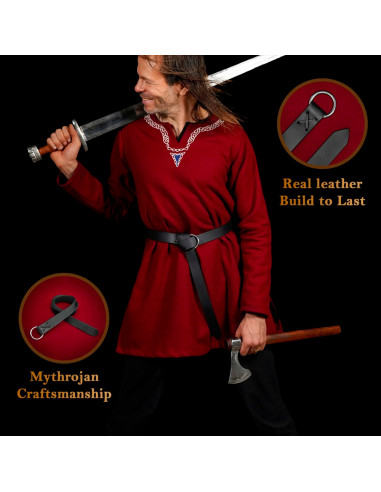 Progettata per adattarsi a diverse misure tramite molteplici fori, questa cintura consente una regolazione precisa, ideale sia per essere indossata sopra strati e strati in ricreazioni medievali, sia per integrarla nel tuo guardaroba quotidiano con un tocco nordico. Il pezzo metallico finale, fissato con tre rivetti dorati, rinforza la punta e aggiunge un dettaglio autentico che risalta in fotografie ed eventi.