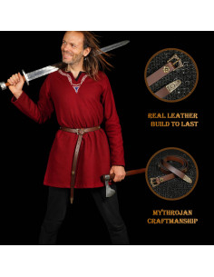 Cintura vichinga doppia in pelle, modello Ubbe, testa di moro